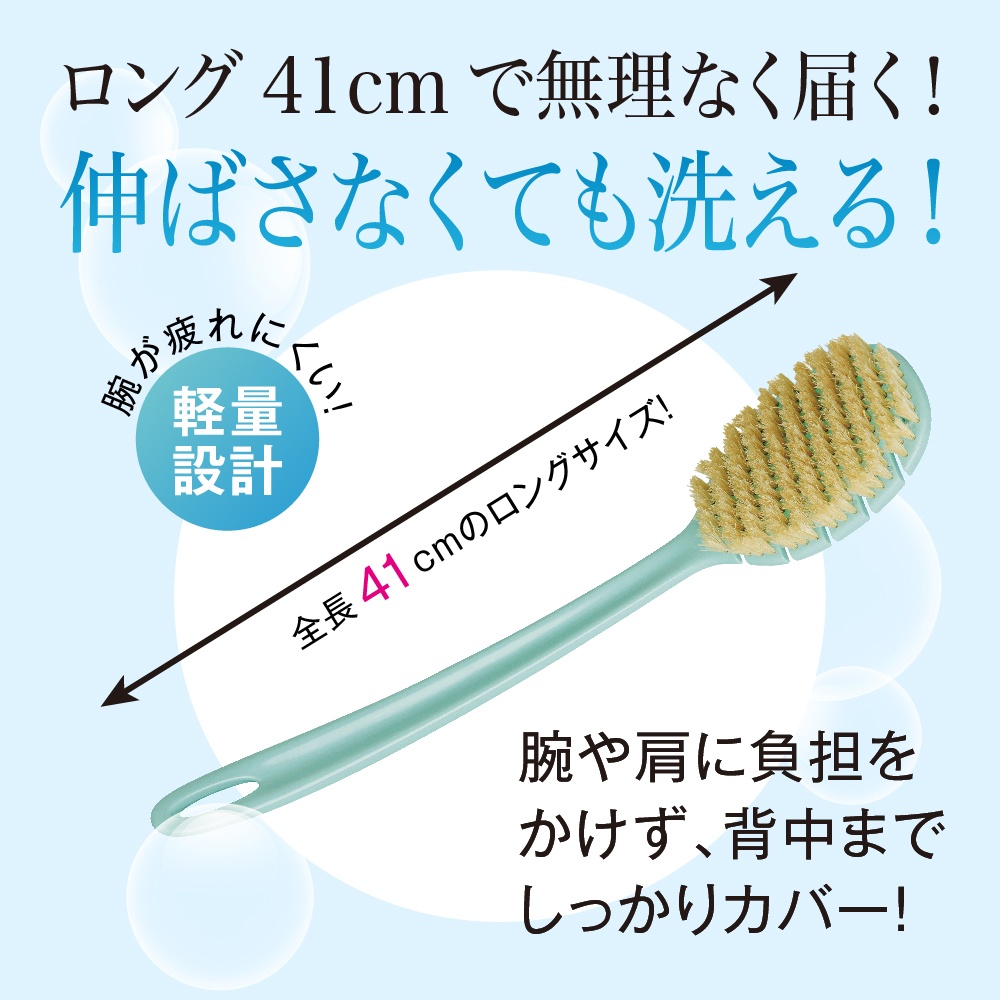 全長41㎝のロングサイズで、背中や足裏もらくらくブラッシング。